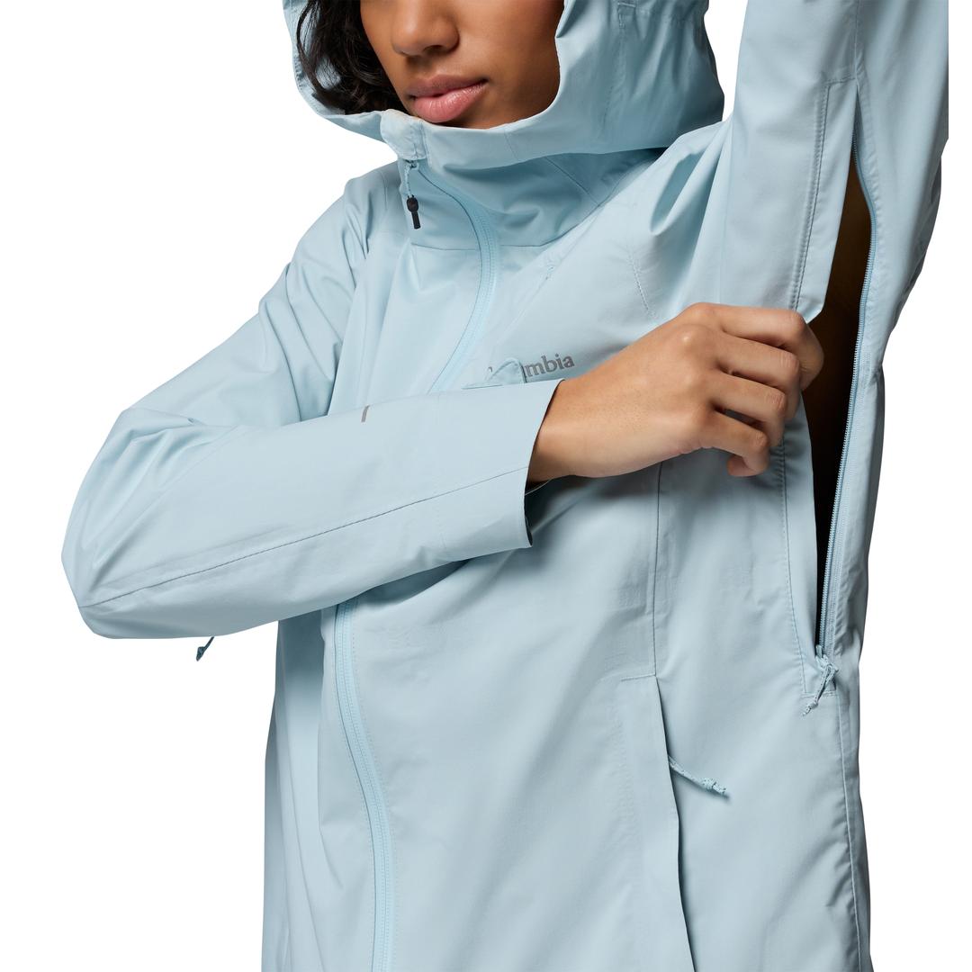 FEATURES: Omni-Tech™ fully seam sealed prevents moisture from seeping into every seam while using waterproof-breathable fabric, so you stay completely dry in the rain Bonded visor, hem, hand-pocket openings, front closure, and cuffs for durability Attached hood with peripheral vision adjustability Chin guard prevents chafing Underarm venting increases airflow and releases excess heat 2-way front zipper closure adds extra mobility while PU material seals out moisture when fully closed Zippered chest and hand pockets secure valuables Drawcord-adjustable hem and adjustable cuffs seal out the elements Droptail hem for extra coverage and protection Packable into hand pocket for easy storing Reflective detail for visibility Center Back Length: 28.0 in / 71.1 cm Uses: Hiking Imported